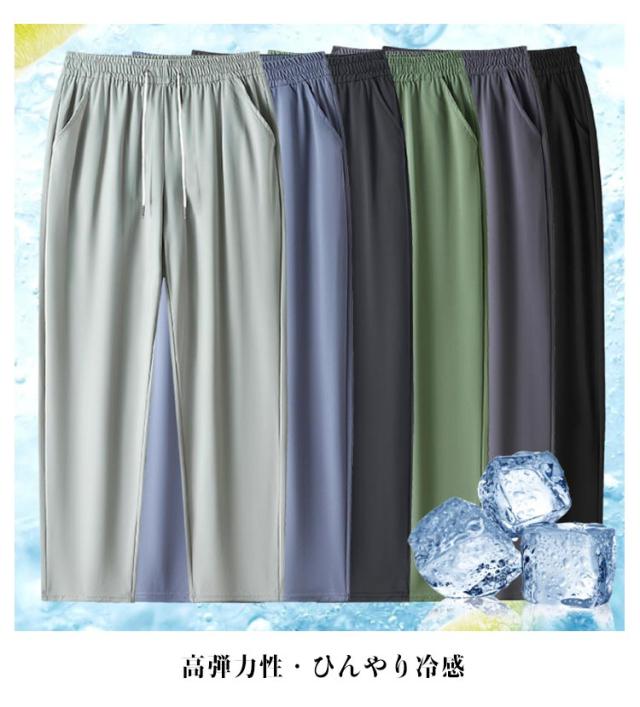 アイスシルク パンツ メンズ 接触冷感 夏用 ひんやり パンツ ゴルフパンツ 薄手 ストレッチ 夏 パンツ 高弾力性 涼しい 清涼 作業 ズボン チノパン テーラードパンツ 速乾 ワークパンツ 運動 送料無料