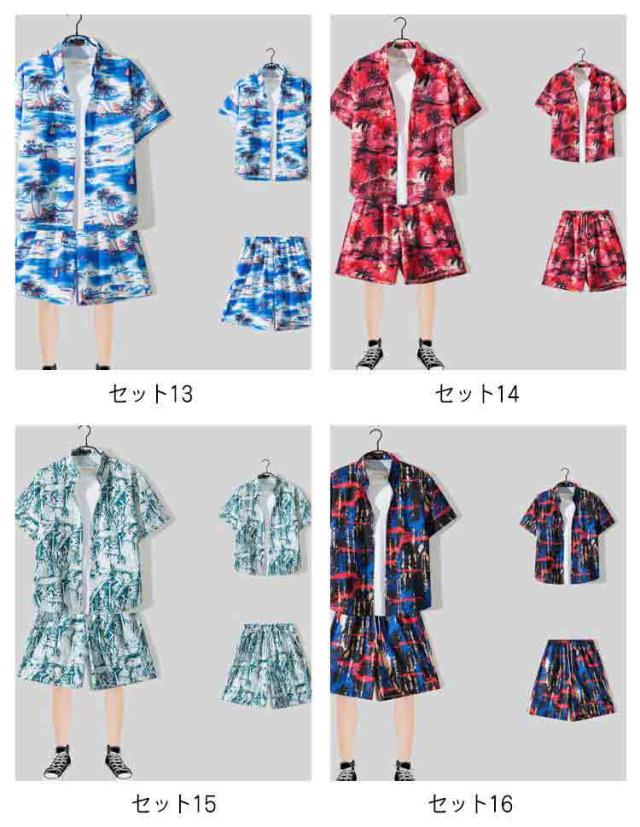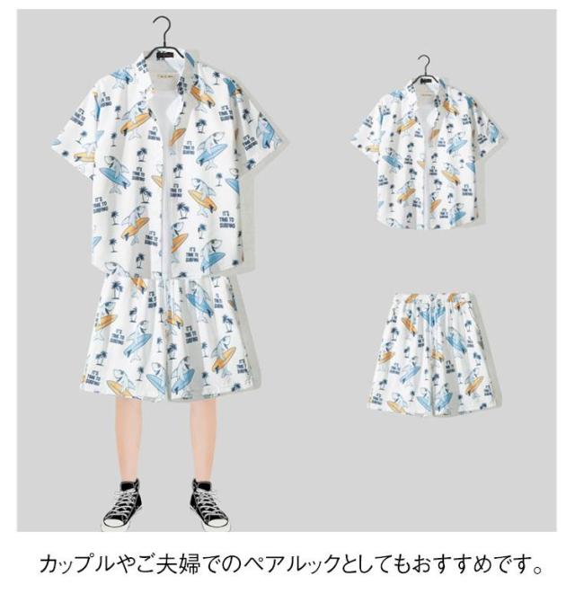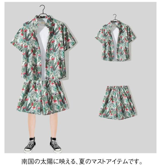 アロハシャツ セットアップ メンズ 夏用 上下セット カップル シャツ ショートパンツ セット サマーシャツ レディース リゾートシャツ 半袖 花柄シャツ 旅行 送料無料