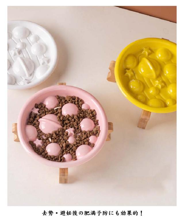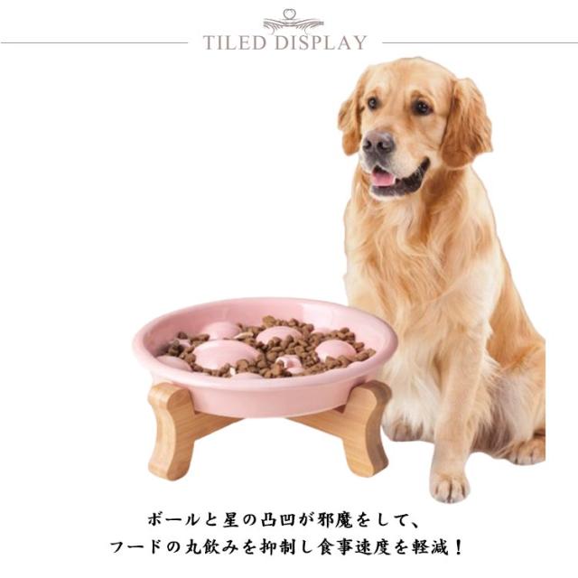 | 便利な陶器製早食い防止皿 木製スタンド付き ボールと星の凸凹が邪魔をして、フードの丸飲みを抑制し食事速度を軽減! おしゃれで安定感のある木製スタンド付き!高さがあるのでで食べやすく、ペットの体への負担を和らげ、ラクな姿勢で食事ができます。 厚みのある丈夫な陶器製食器。電子レンジ・食洗機・熱湯OK! 去勢・避妊後の肥満予防にも効果的! 喉につまる、消化不良、肥満などの問題を解消でき、健康的な食べ方を促進します。 | |