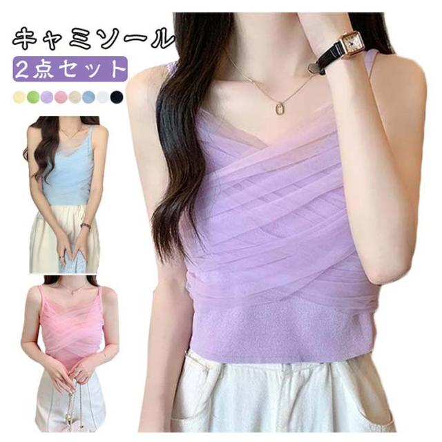 2点セット レディース チュールキャミソール カップなし 下着 チュールキャミソール アンダーウェア キャミ ショートキャミ トップス インナー キャミソール ブラトップ かわいい フェミニン