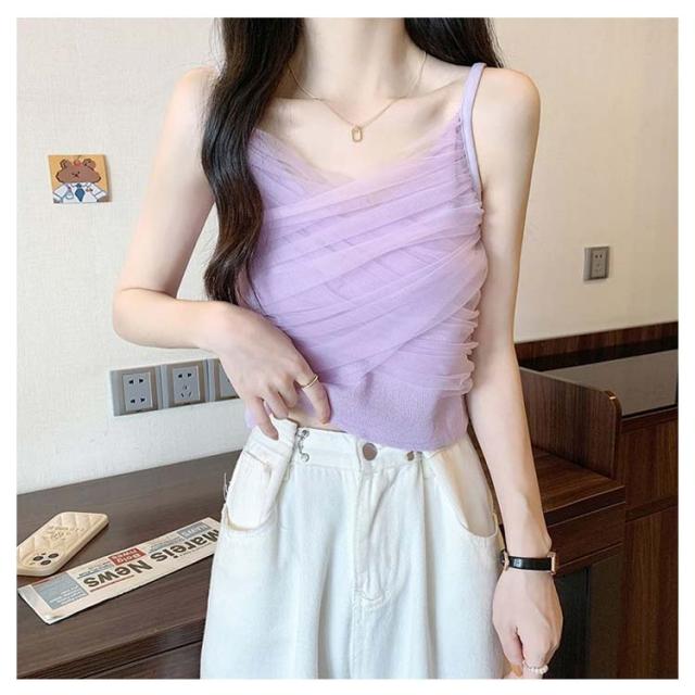 | 【2点セット】 チュールと切り替え、モードな印象が引き立つキャミソール。 薄手で柔らかく着心地の良いストレッチ生地。タイトフィットな着用感です。 細めのストラップはデコルテや肩回りを華奢に見せてくれ、洗練された印象に。 全8色、普段使いに重宝するなカラーバリエーションを採用。 ボディに程よくフィットするシルエットで、インナーとしてはもちろん、一枚で単品でも着用いただけます。 | |