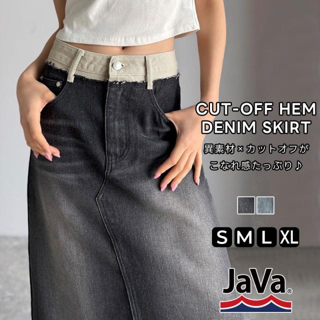 クラシカルエルフ秋新作 javaジャバ コラボ ボトムス スカート レディース ウエスト 異素材 切り替え 裾カット オフ デニム SK ロング丈 大きいサイズ 2025ss jv0909008