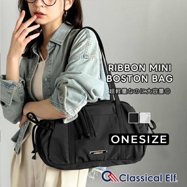 クラシカルエルフ秋新作 バッグ ボストンバッグ レディース ロゴ プレート 使い サイド リボン ミニ ボストン 軽量 大容量 大きいサイズ 2025ss ce1179062