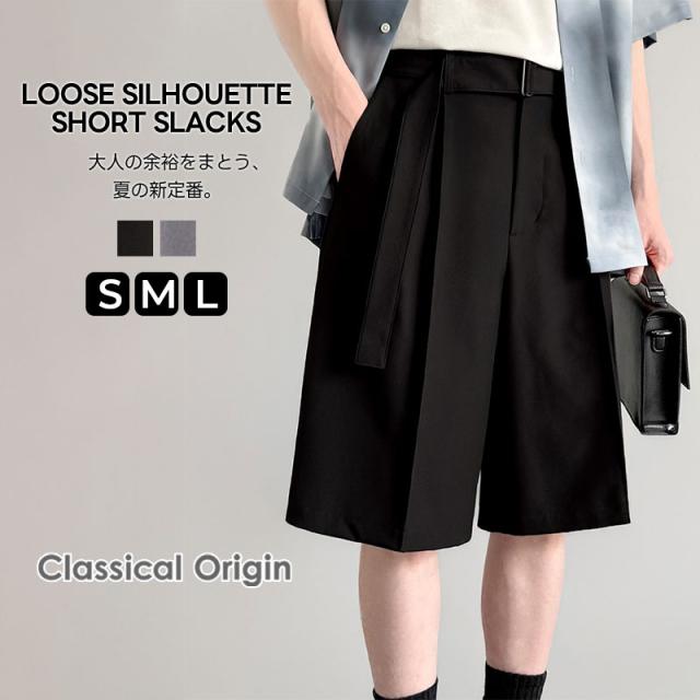 クラシカルエルフ秋新作 Classical Origin ボトムス パンツ メンズ スラックス ベルト付き ルーズシルエット ショートスラックス 落ち感 ツイル素材 きちんと感 リラックス オンオフ ピンタック キレイめ ウエストゴム 大きいサイズ 2025ss co1150020