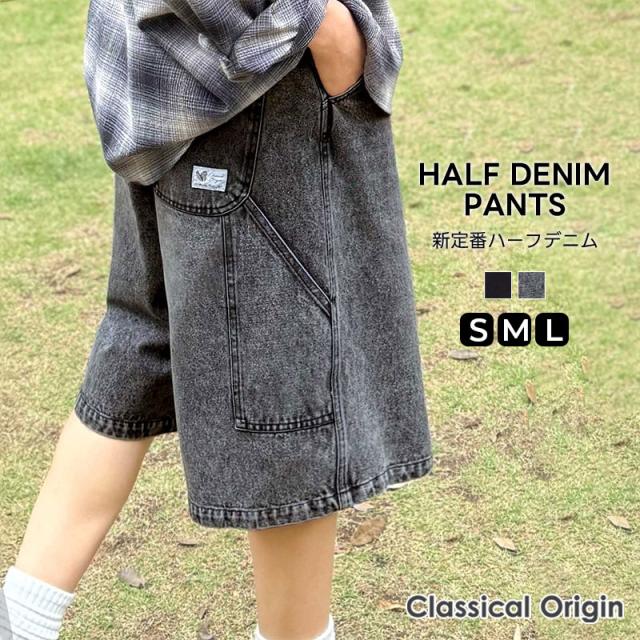 クラシカルエルフ秋新作 Classical Origin ボトムス パンツ メンズ ハーフデニムパンツ ベルトデザイン ペインター 新定番 古着 綿100% ワイドシルエット ストリート アウトドア ウエストベルト付き ウエストゴム仕様 大きいサイズ 2025ss c co1150029