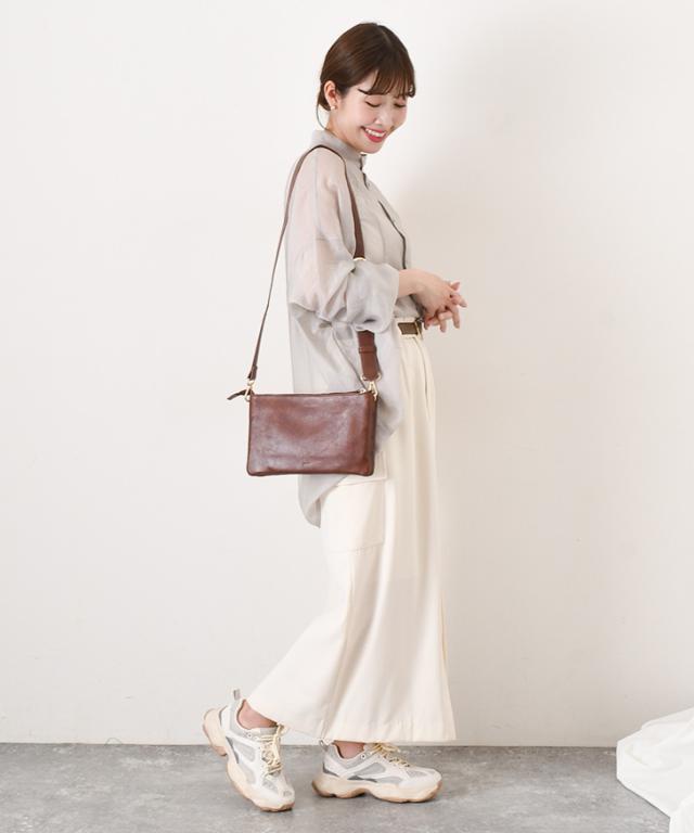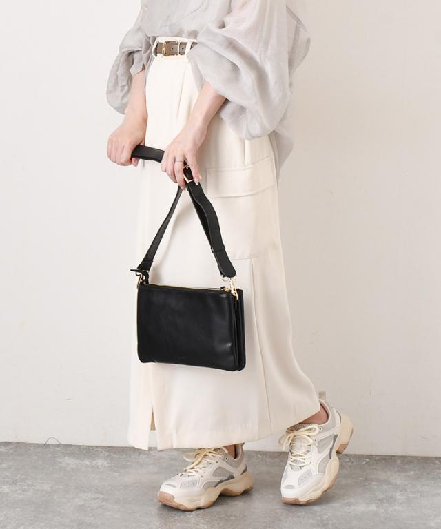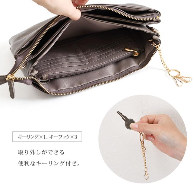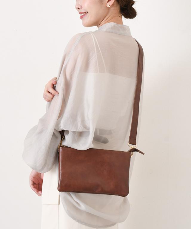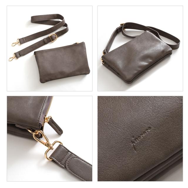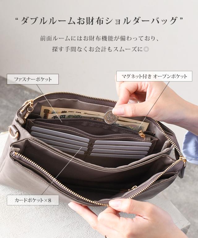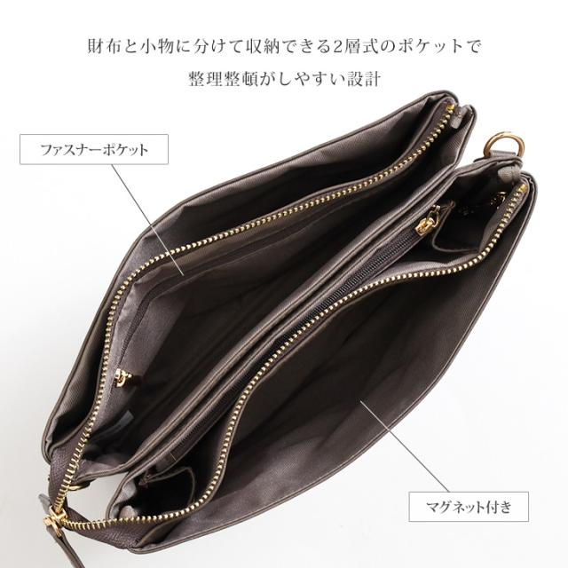 フェイクレザーを使用したダブルルームお財布ショルダー