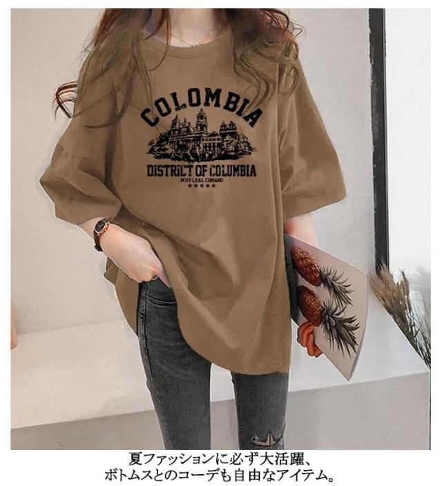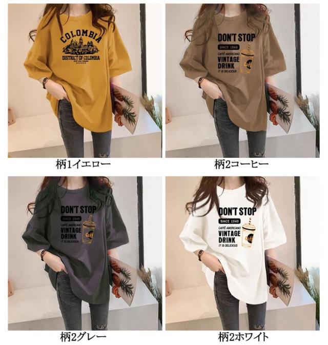 ゆったり 無地Tシャツ プリントtシャツ 夏 ラウンドネック 夏Tシャツ レディース 柄tシャツ Tシャツ 半袖Tシャツ 体型カバー 無地Tシャツ ゆったり ビッグシルエット 可愛い 個性的 半袖 柔らかい 快適 カジュアル ファッション カットソー 無地