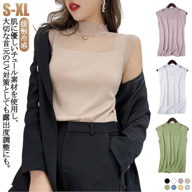 ノースリーブ トップス Tシャツ タイト レディース トップス かわいい シースルー インナー 接触冷感 トップス ハイネック 夏 薄手 シアーシャツ シャツ メッシュトップス おしゃれ シアートップス