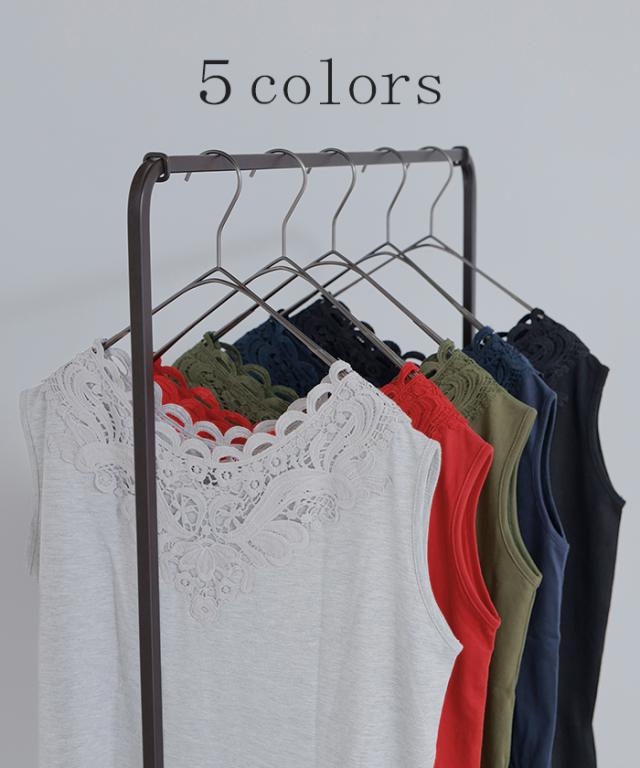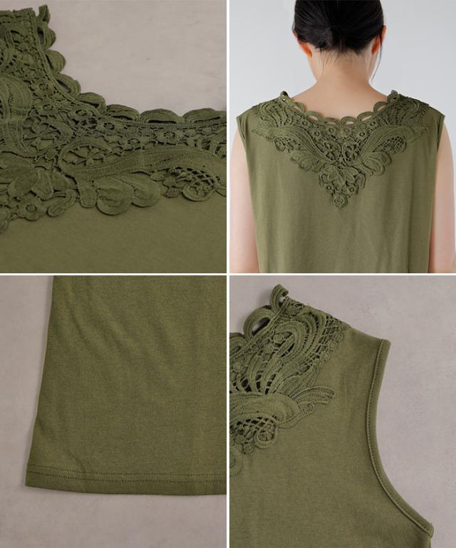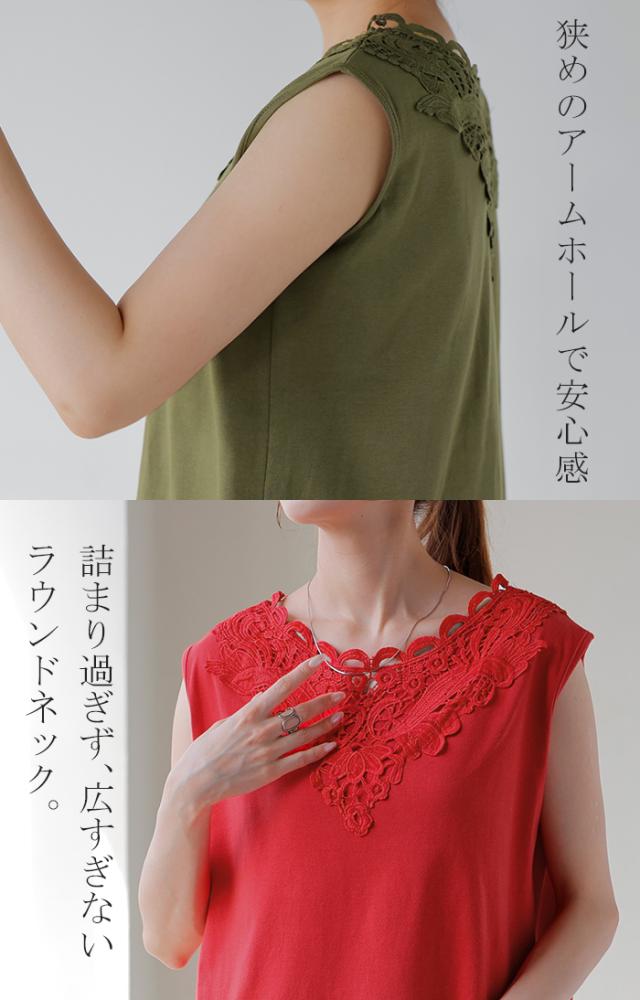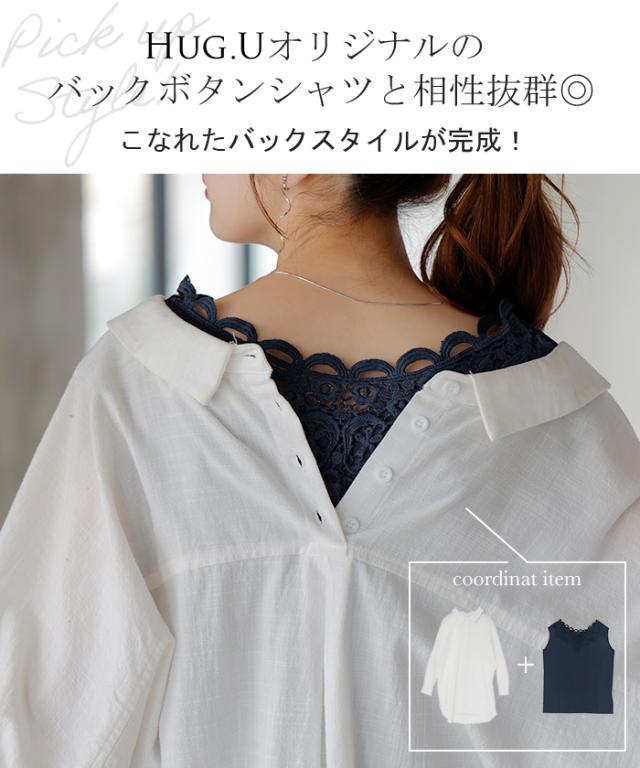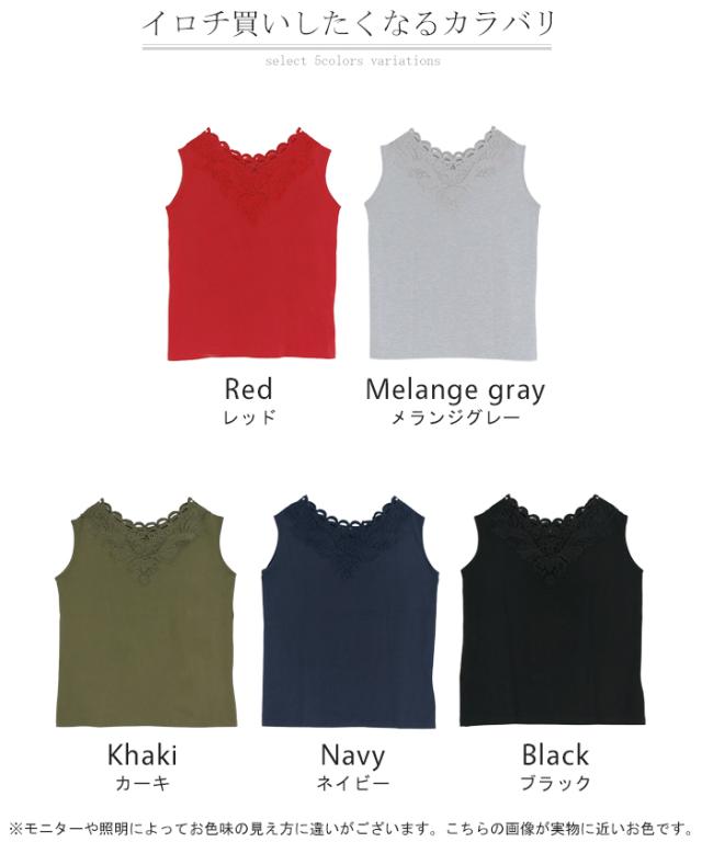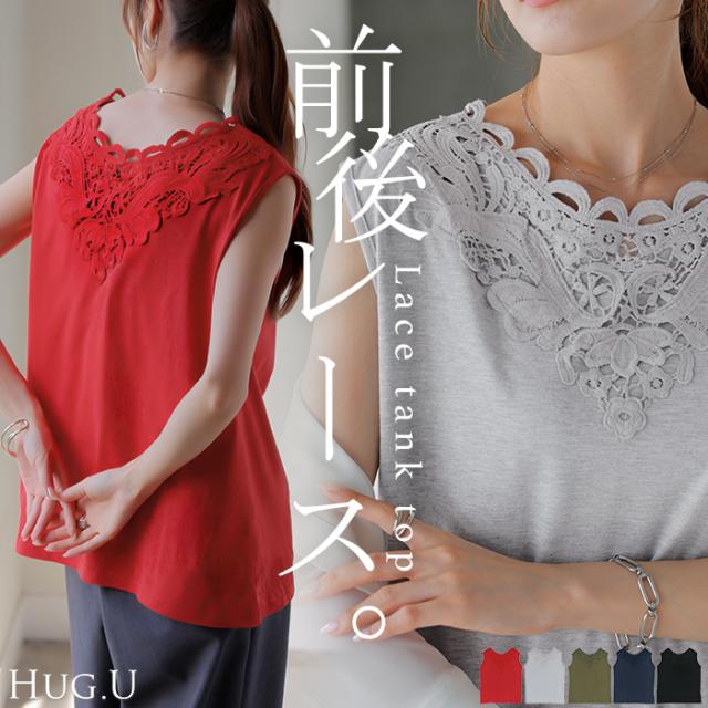 タンクトップ レース レイヤード インナー トップス タンク レディース カットソー 花柄 ノースリーブ キャミソール ロング クルーネック ロングタンク 重ね着 長い 無地 ゆったり カラバリ シンプル 体型カバー きれいめ 大人 黒 赤 春 夏 HUG.U