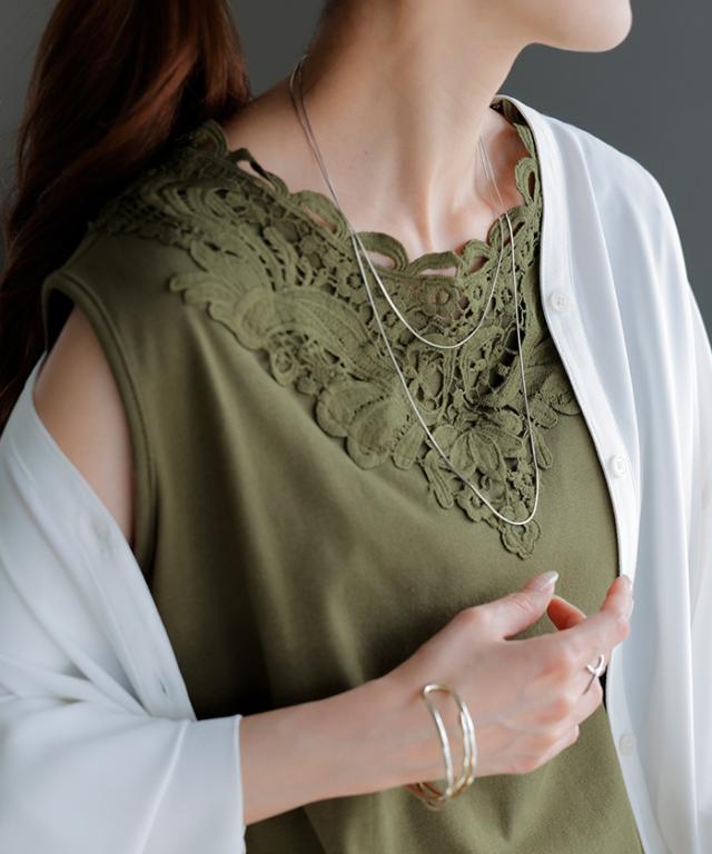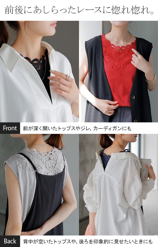 女性ならではのレースを日常に取り入れやすく着回しがきく優秀アイテムです。