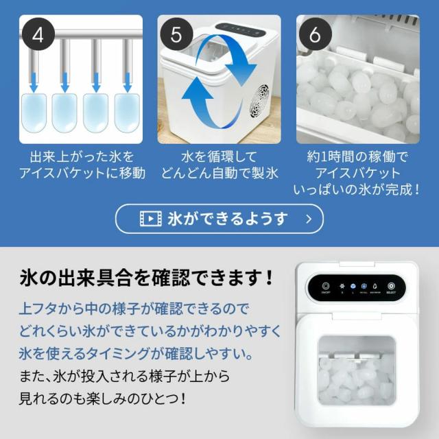 ・自動停止機能付!氷が満タン(約63〜72個)or水が足りなくなるとランプが点灯して自動的に停止します!