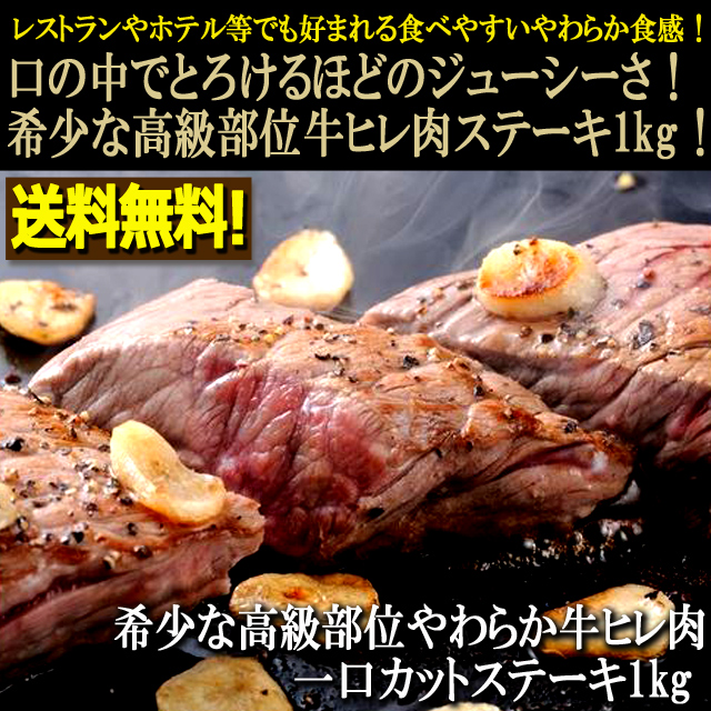 1kg 希少な高級部位!やわらか牛ヒレ肉一口カットステーキ1kg 送料無料 通販流通品 ランダムサイズカット 冷凍 レストラン ホテル 牛ヒレ丼