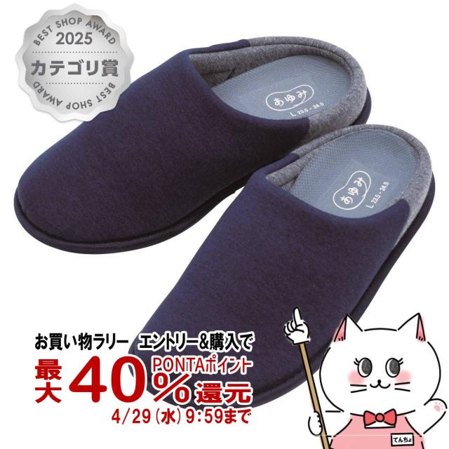 【お買い物ラリー 最大40%還元】徳武産業 あゆみチャルパー II ネイビーLL[介護シューズ シニアシューズ スリッパ 室内履き ルームシューズ][送料無料](6060963)(wn0606)