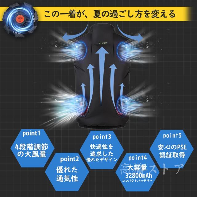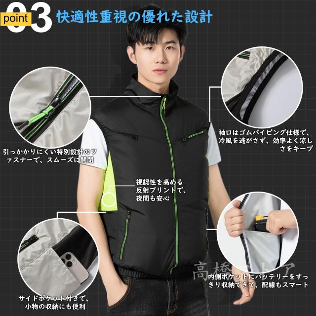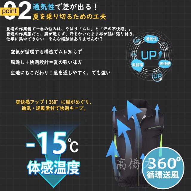 高機能性2025夏の最新デザイン、強力な風で「薄・軽」ベストの内部に空気の循環を吹き出し、汗を素早く吹き飛ばすことができます。