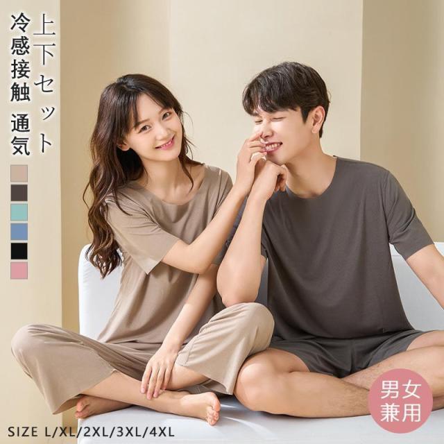 2点セット パジャマ ルームウェア レディース 部屋着 上下セット 夏 メンズ 春 寝間着 結婚祝い 可愛い カップル ギフト 半袖 大きいサイズ ゆったり 無地 通気