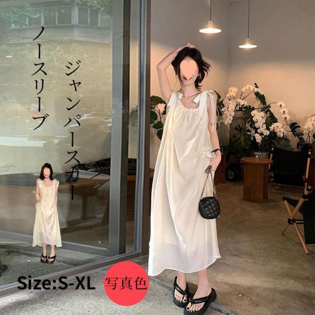 体型カバー カジュアワンピ マキシ丈 ノースリーブ ジャンパースカート ロング 袖なし ゆったり 大きいサイズ 春 夏 通勤 オフィス