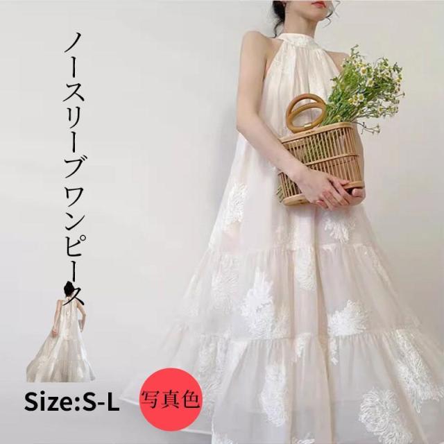 ワンピース ノースリーブ レディース ロング丈 大きいサイズ 夏 無袖 マキシ丈 Aライン 体型カバー タンクワンピ ゆったり