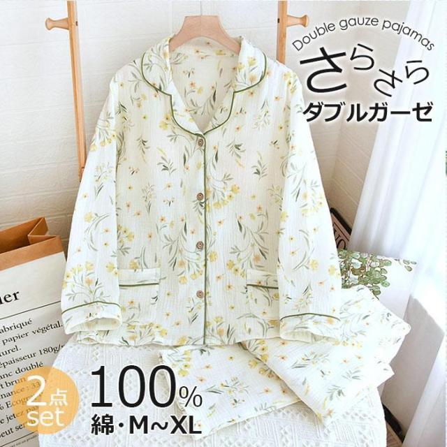 ガーゼパジャマ ゆったり レディース 前開き 部屋着 セットアップ ルームウエア 綿100%春 母の日 寝巻き 浴衣 二重ガーゼ 部屋着 入院 産後ガーゼパジャマ 薄手