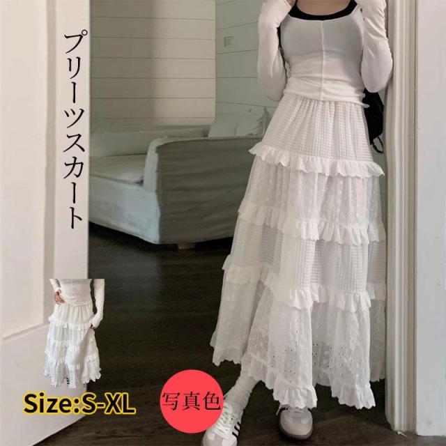 スカート ロング フレア 春 レディース プリーツスカート 無地 春秋 コーデ エレガントカジュアル 優雅