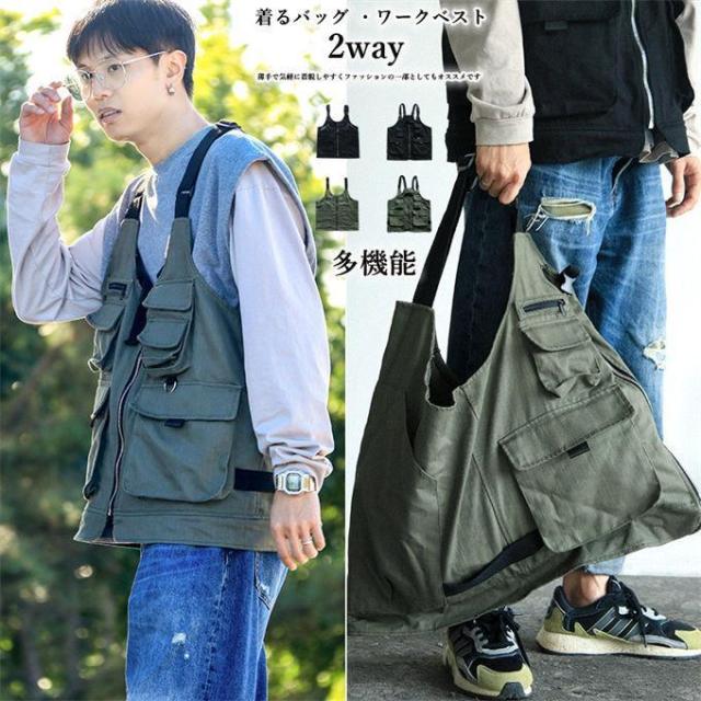ヘルメットバッグ 着るバッグ ハンティングベスト メンズ 2way 春 夏 おしゃれ 綿 ベスト 重ね着 多ポケット ベストバッグ 大きいサイズ 登山 釣り アウトドア