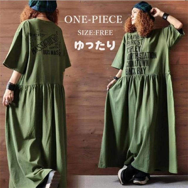 ワンピース レディース 半袖 フリル ロングワンピース プリント ミモレ丈 シンプル 着回し 大きいサイズ 体型カバー ゆったり 着痩せ おしゃれ キレイめ