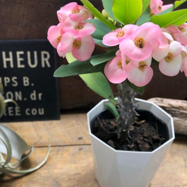 あたたかい場所であれば、一年中花を咲かせる鉢花として人気の植物です。緑が減る冬にハナキリンを1つ置くと、お部屋の印象が明るくなりますよ。
