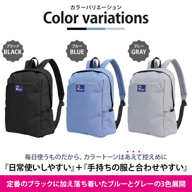 カラーはコーデに馴染むブラック・ブルー・グレーの3色展開。