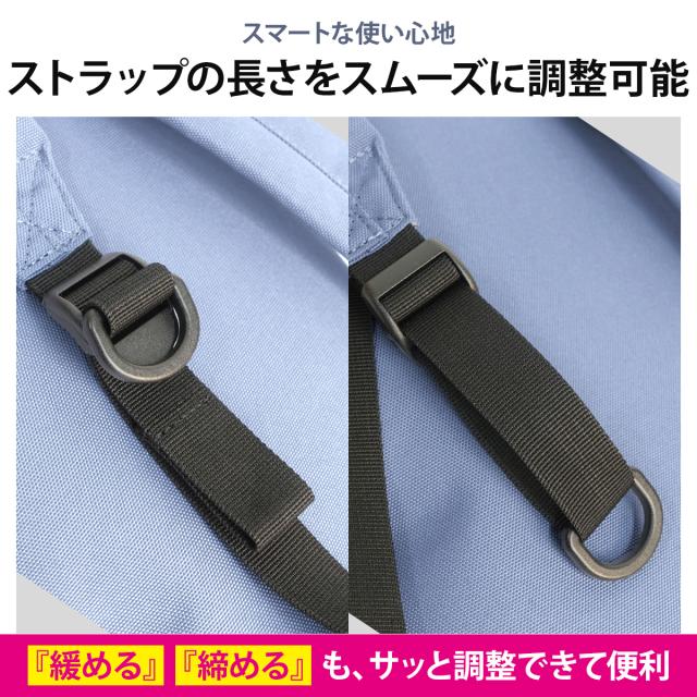 耐久性に優れた900Dポリエステルを使用し、ストラップの長さをワンタッチで調整できるクイックリリース機能を搭載。