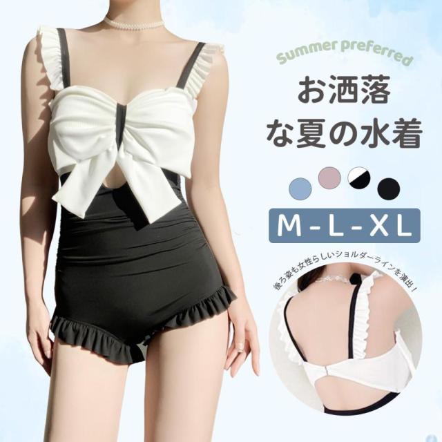 メメエクストラ 水着 レディース ビキニ オールインワン ワンピース タンキニ フリル 可愛い パット付き ショートパンツ プール 肩出し 女性 ハイウエスト 大き