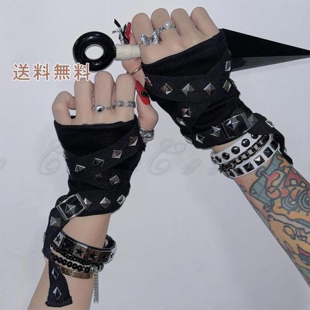 バックル 指なし手袋 指出し リストバンド リベット パンク ロリータ ゴスロリ ゴシック 手袋 グローブ ブラック コスプレ コスチューム パーティー