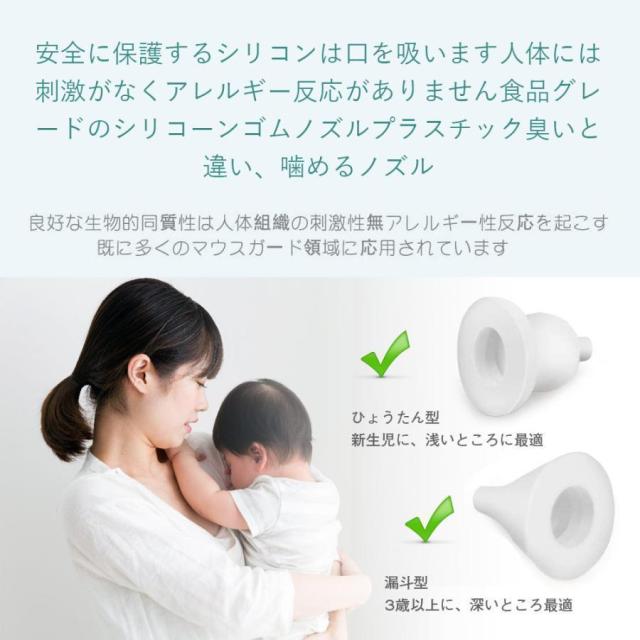 【医療グレードの安全性 】安全で衛生的なシリコーンチップの2つの選択肢があり、年齢層によって最適化されています。 BPAフリー、ラテックスフリー。 赤ちゃんのデリケートな鼻を痛めることなく、あらゆるサイズの鼻にフィットします。