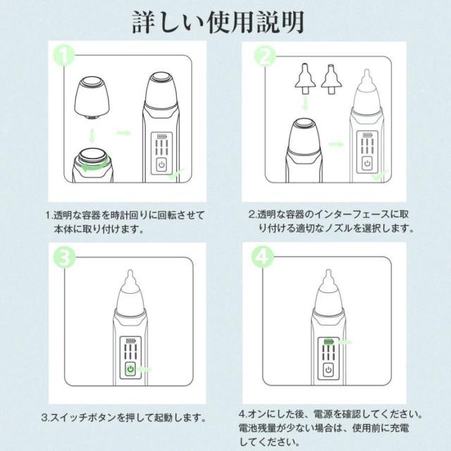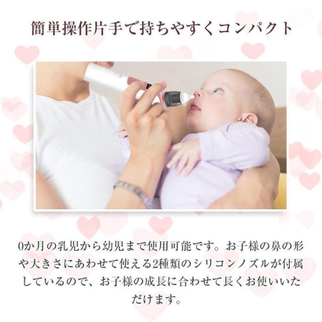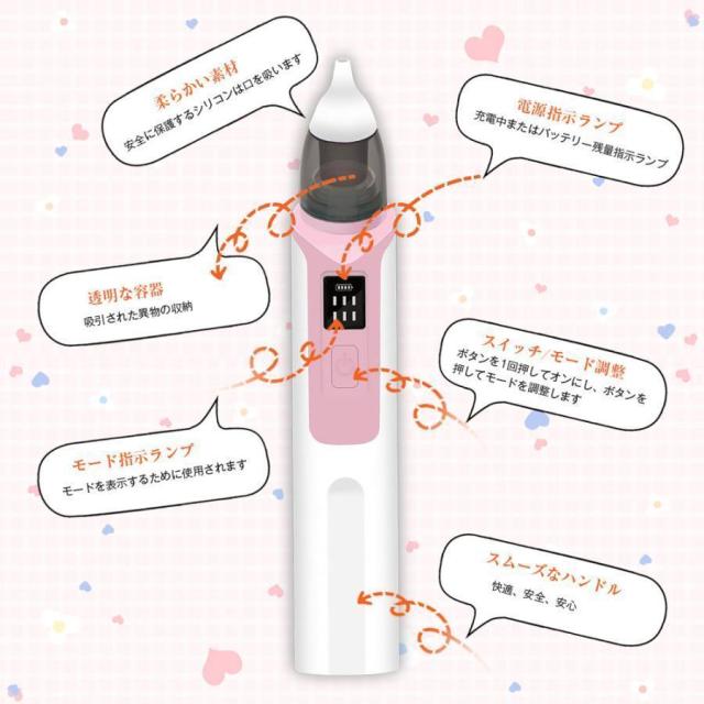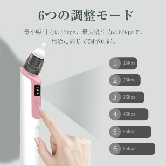 鼻水吸引器 電動 赤ちゃん 鼻吸い器 充電式 乳幼児用 花粉 LED残量表示 コンパクト 6段吸引力調節 子供 ベビー 新生児 出産祝い