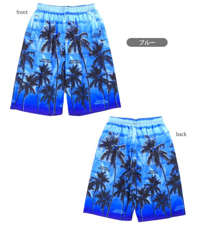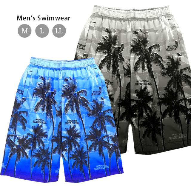 【メール便送料無料】【大きいサイズあり】サーフパンツ 水着 メンズ M L LL M-2563 ブラック ブルー スイムウェア 海水パンツ 海パン 短パン トランクス ハーフパンツ ショートパンツ 男性 ヤシ柄 椰子 ビーチ リゾート 紳士 黒 青 sw3651