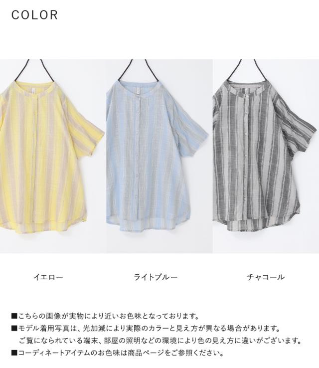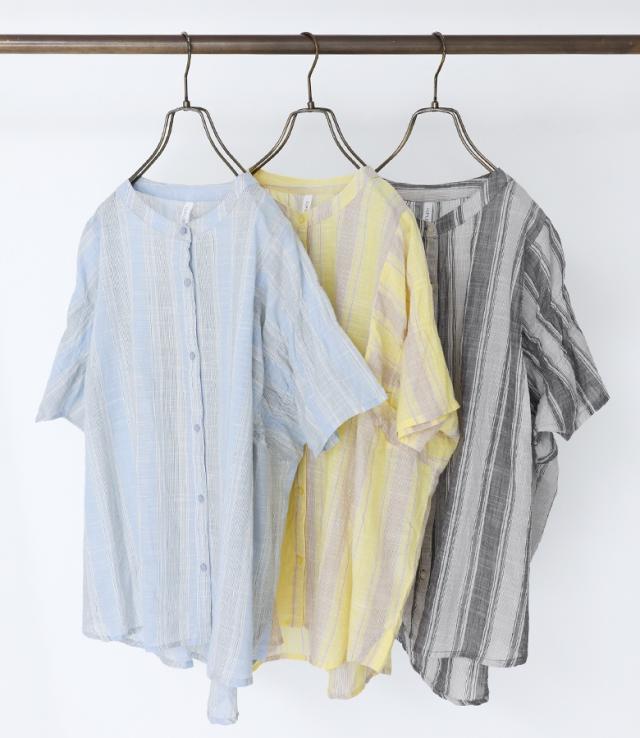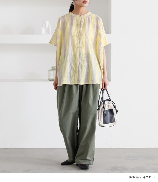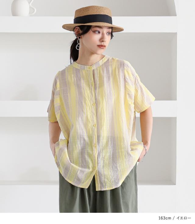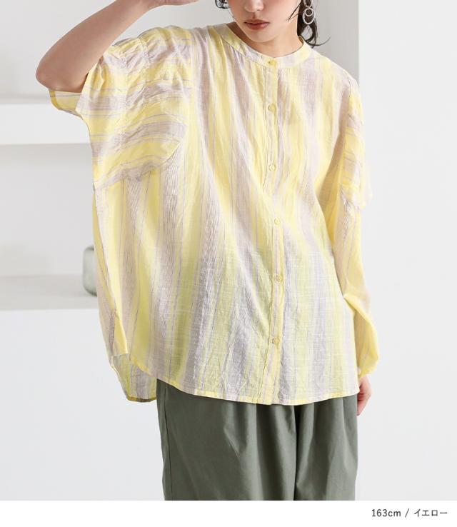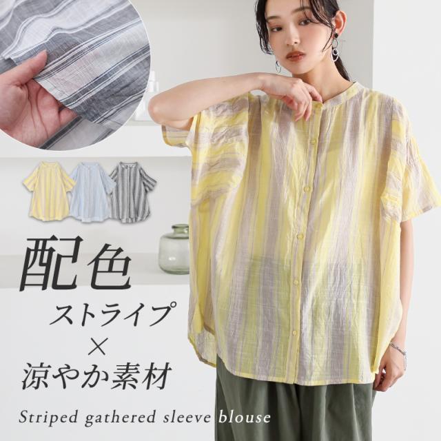 ブラウス 半袖 五分袖 レディース トップス シャツ バンドカラー ストライプ柄 インド綿 薄手 ギャザー 体型カバー カジュアル ナチュラル 春 夏 【TP】 ボタンシャツ 前開きシャツ 大人女子 大人可愛い お洒落可愛い 大人カジュアル ベーシック ニュアンス ラフ エフォートレス オフィスカジュアル 上品 きれいめ 袖コンシャス ギャザー袖 ミディ丈 ミドル丈 シャーリングギャザー マルチストライプ 総柄 配色 綿100% コットン100% シアー 透け感 おうちで洗える 涼しい シンプル キレカジ フェミニン 可愛い系 二の腕カバー Sサイズ Mサイズ Lサイズ LLサイズ 3Lサイズ XLサイズ フリーサイズ ぽっちゃり 大きいサイズ プラスサイズ 10代 20代 30代 40代 50代 60代 女子会 通勤 通学 お買い物 お出掛け 旅行 リゾート おしゃれ お洒落 トレンド 流行 ママ 母 母親 osharewalker オシャレウォーカー おしゃれうぉーかー イエロー 黄色 ブルー 青 水色 ライトブルー グレー 灰色 チャコールグレー チャコール 差し色[ID]12tn013[ストライプ袖ギャザーブラウス]