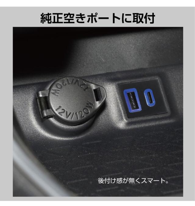・トヨタ車 (一部ダイハツ車)の空きポートに取付できる増設用のUSBポートです。 ・QC(Type-A)とPD(Type-C)2つの高速給電ポートを備えたチャージャーです。 ・純正風仕上げで後付感を減らし、まるで純正かのように増設できます。 ・アクセサリーヒューズにコネクターを接続するだけの簡単電源確保!面倒な配線作業も必要ありません。 ・夜間でも充電口が確認できるようLEDが発光するのでワンポイントイルミネーションとしてもGood! |