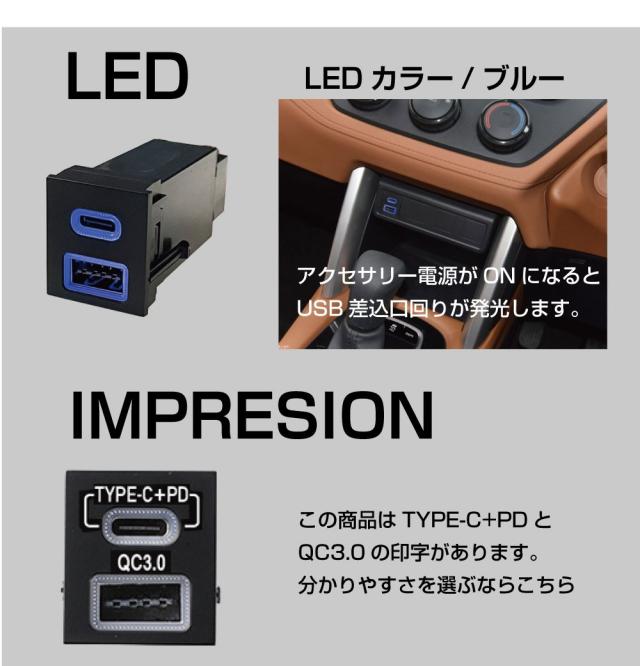 車 自動車 USB ポート カーチャージャー 増設 トヨタ車系 T04タイプ スイッチホール増設用 USBポート 【PD & QC3.0 マーク有】PO-T04-PDQN | USBチャージャー スマホ 充電 純正風 タイプC タイプA TypeC TypeA 充電器 スイッチホール LED パネル 電源 ポート増設 配線