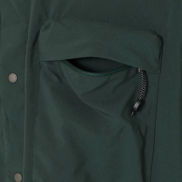 NANGAが提案するPLCシリーズから登場した、軽量パッカブルTシャツ。旅行や出張、フェスや外遊びなど、荷物を最小限に抑えたいシーンで活躍する実用的な一着。本体には、軽さと耐久性を兼ね備えたSHADOW RIP素材を採用。さらりとした肌触りで、UVカットや吸水速乾性といったアウトドアに嬉しい機能性も備えています。左裾には反射プリントのロゴを配置し、夜間や暗所での視認性にも配慮。
