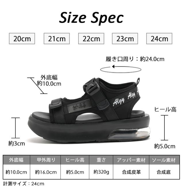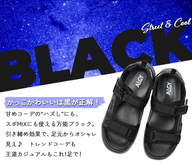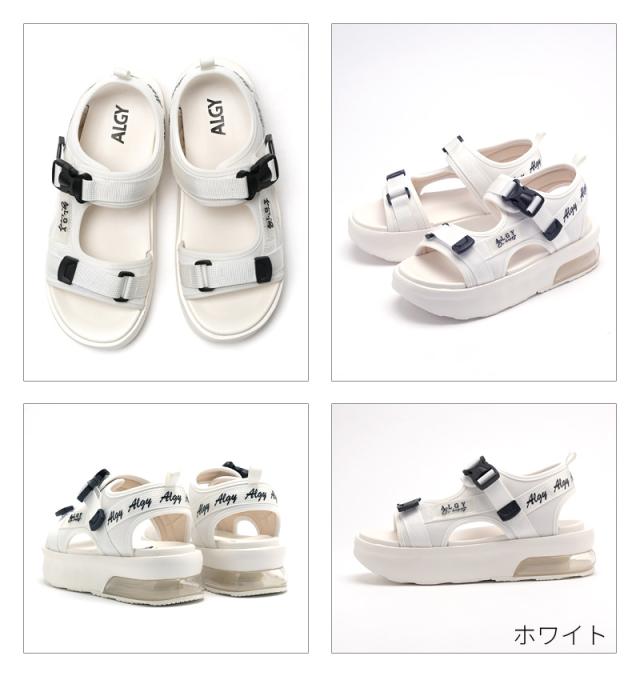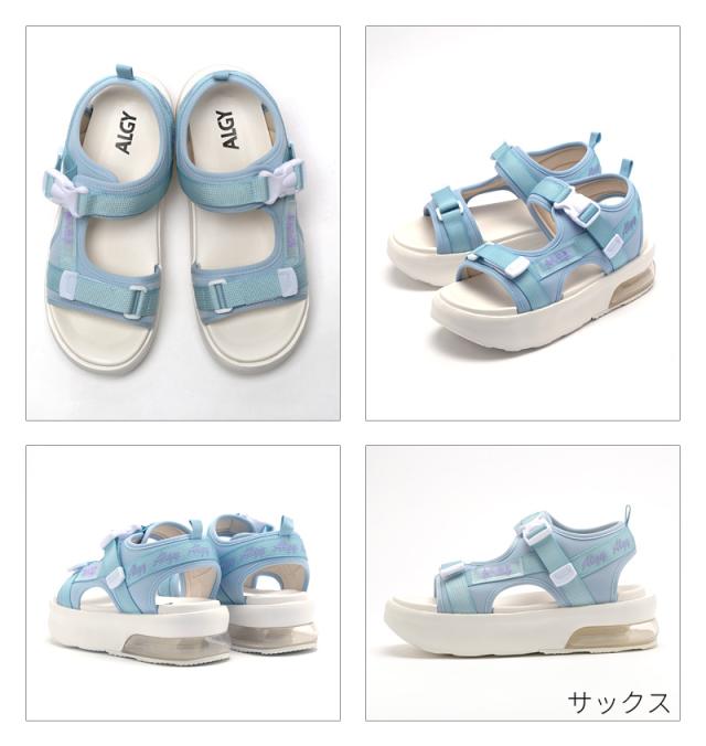 ALGY アルジー 2025新作 スポーツ サンダル キッズ 女の子 ジュニア 靴 シューズ エア入り かわいい スポーティーサンダル 厚底 ストラップ ボリュームソール 黒 白 ブラック ホワイト 20〜24cm 靴 小さいサイズ ガーリー ティーンズ 小学生 中学生 子供 送料無料
