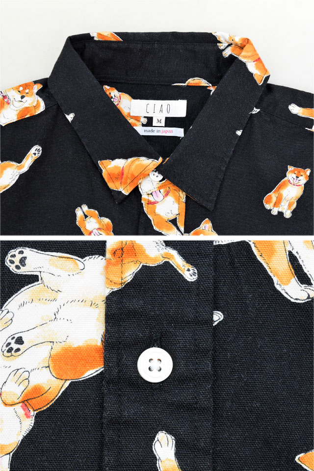 柴犬半袖シャツ 羽衣シャツ 254-52 イヌ 総柄 日本製 国産