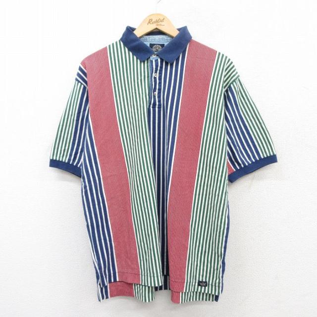 古着 ドッカーズ 半袖 ブランド ポロ シャツ メンズ 90年代 90s 大きいサイズ コットン 緑他 グリーン ストライプ spe XLサイ 中古 古着