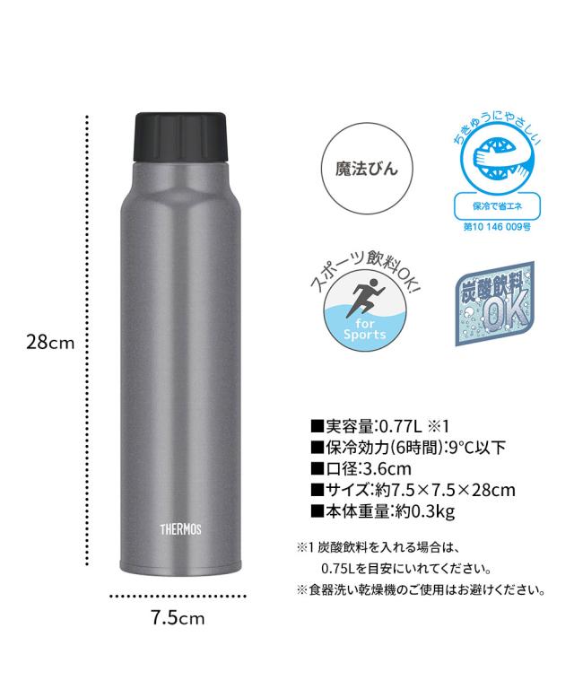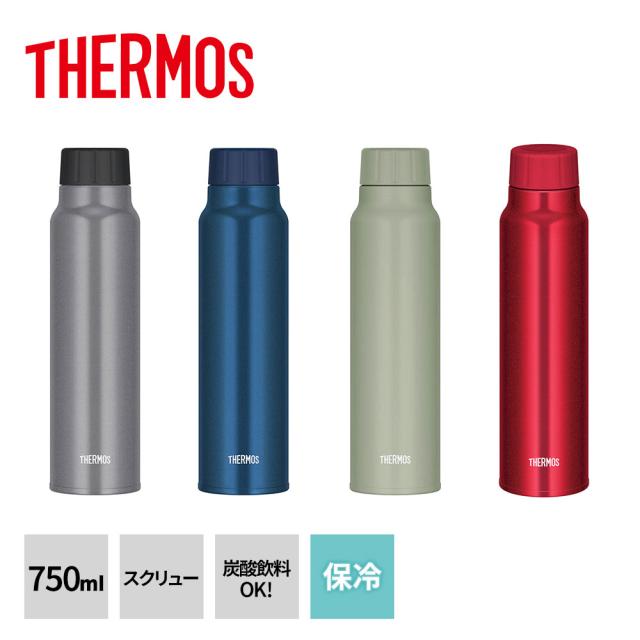サーモス 水筒 ボトル 炭酸飲料 スクリュー 750ml 保冷 魔法びん マイボトル エコ 持ち運び スポーツ 通学 通勤 シンプル オシャレ 新生活 丈夫 直飲 スポーツドリンク シルバー ネイビー カーキ レッド THERMOS FJK-750