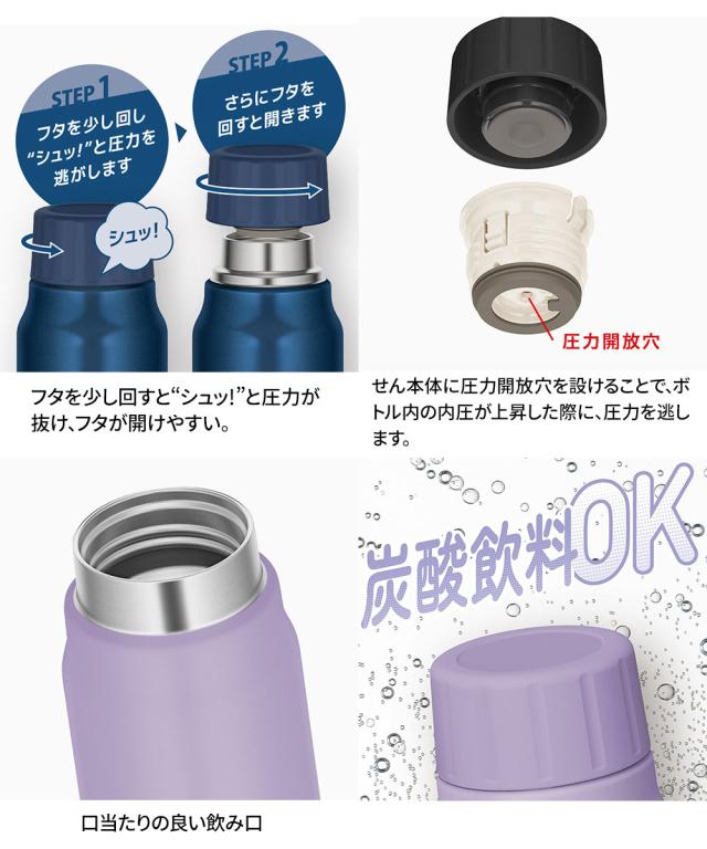 炭酸飲料OK!フタを少し回すと中の圧力が逃げる新構造のフタを採用。