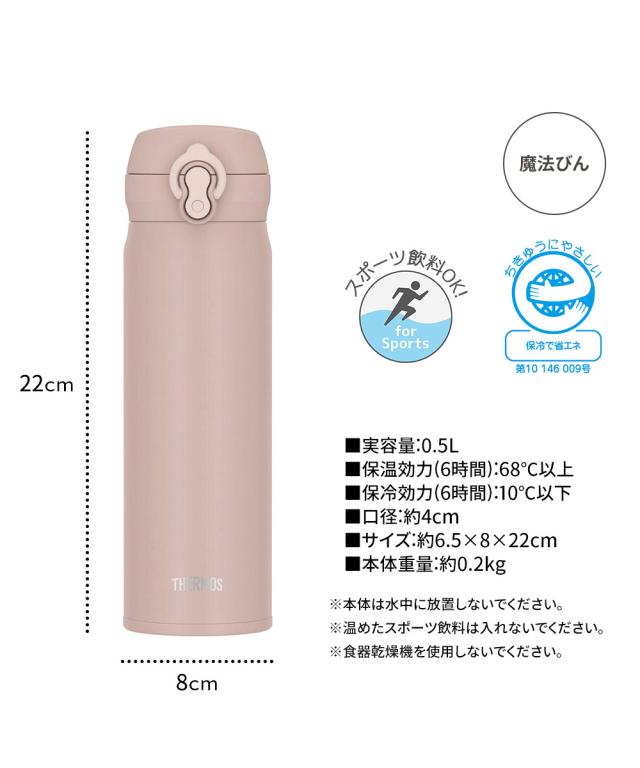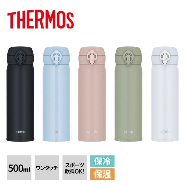 サーモス 水筒 ボトル ワンタッチ 500ml 保温 保冷 魔法びん マイボトル エコ 持ち運び スポーツ 通学 通勤 シンプル オシャレ 新生活 丈夫 直飲 スポーツドリンク ブラック ブルー ベージュ グリーン ホワイト THERMOS 真空断熱 ケータイマグ JNL-S500