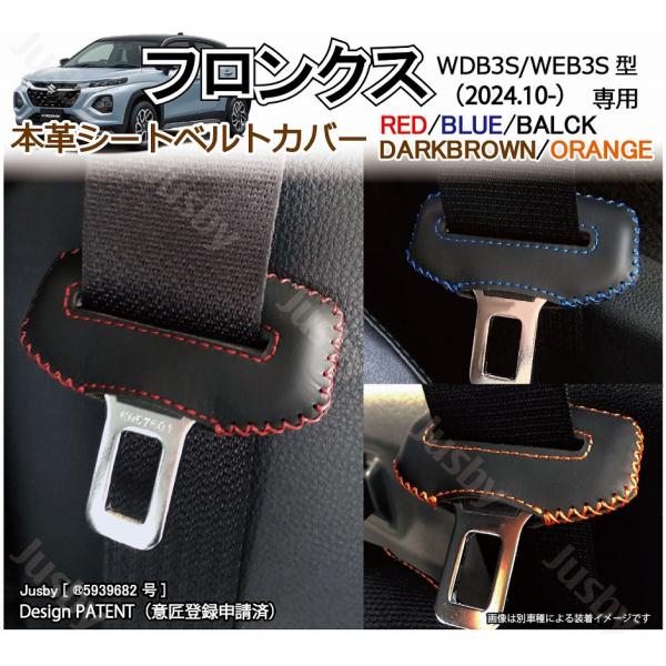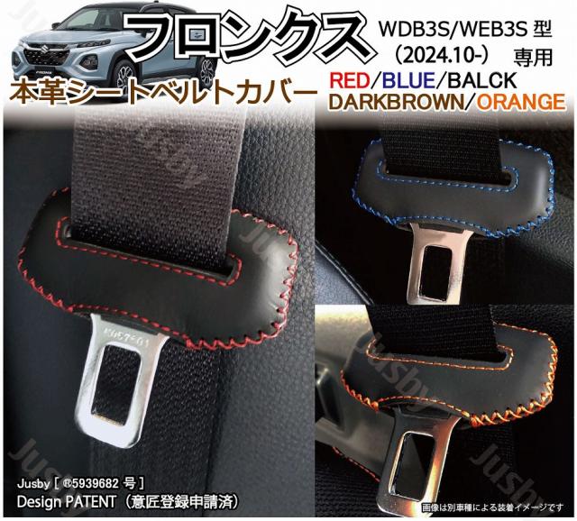 スズキ フロンクス (WDB3S/WEB3S型)用 本革シートベルトカバー 赤 青 黒 茶 オレンジステッチ 傷 異音防止 ドレスアップ 本皮レザーカバー パーツ アクセサリー