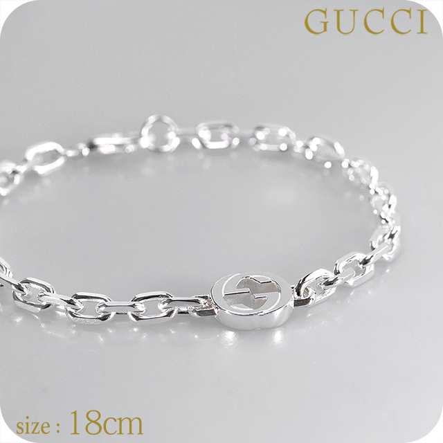 グッチ ブレスレット メンズ ブランド GUCCI インターロッキング チェーン 796351-J8400-8106-18 シルバー アクセサリー