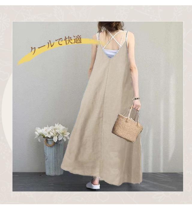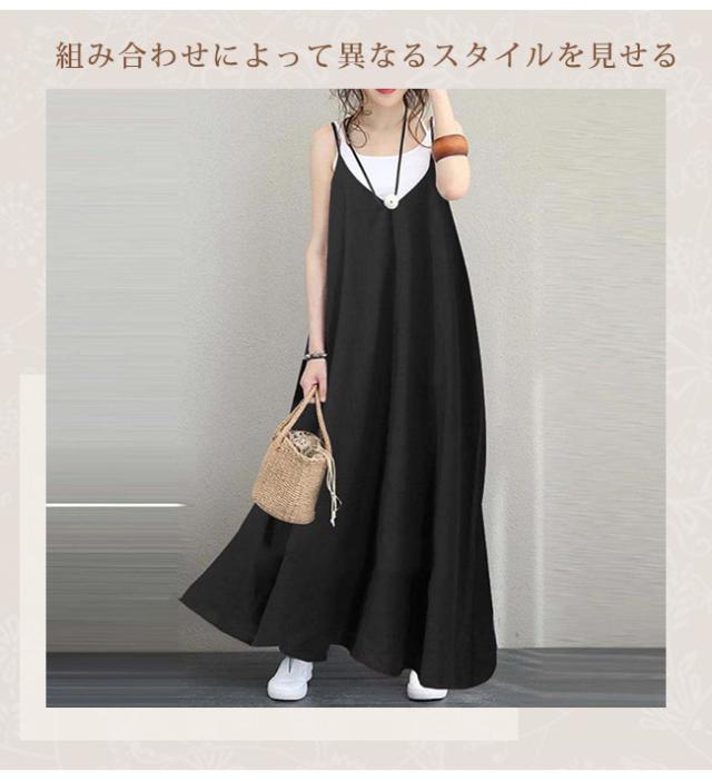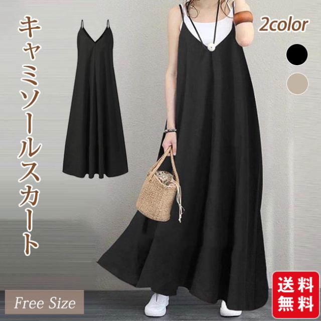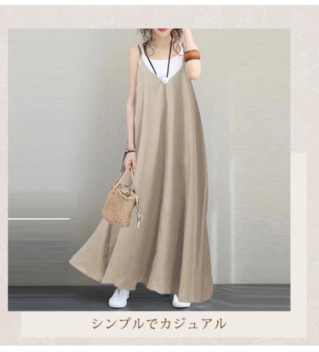 キャミソールロングスカート ゆったり ノースリーブ サロペットスカート 膝丈A字タンクトップ ワンピース ロング