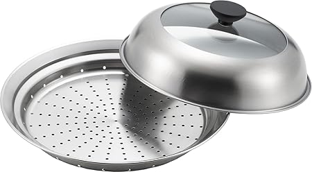★ヨシカワ 見えるフライパン用蒸し器 24〜26cm用 ガラス蓋付き 蒸し料理プレート フライパンにのせるだけ ステンレス 日本製 YJ3212