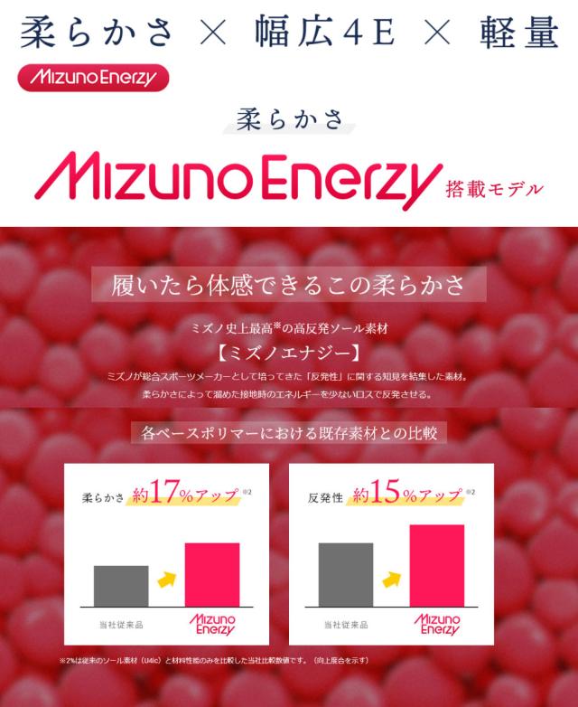 柔らかさ×幅広×軽量ミズノスパイクレス史上初めてミッドソール全体にMIZUNO ENERZYを採用。