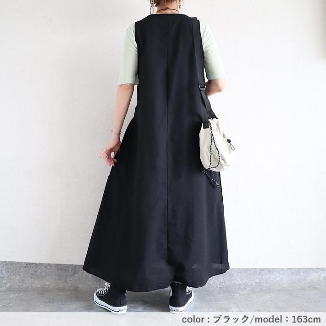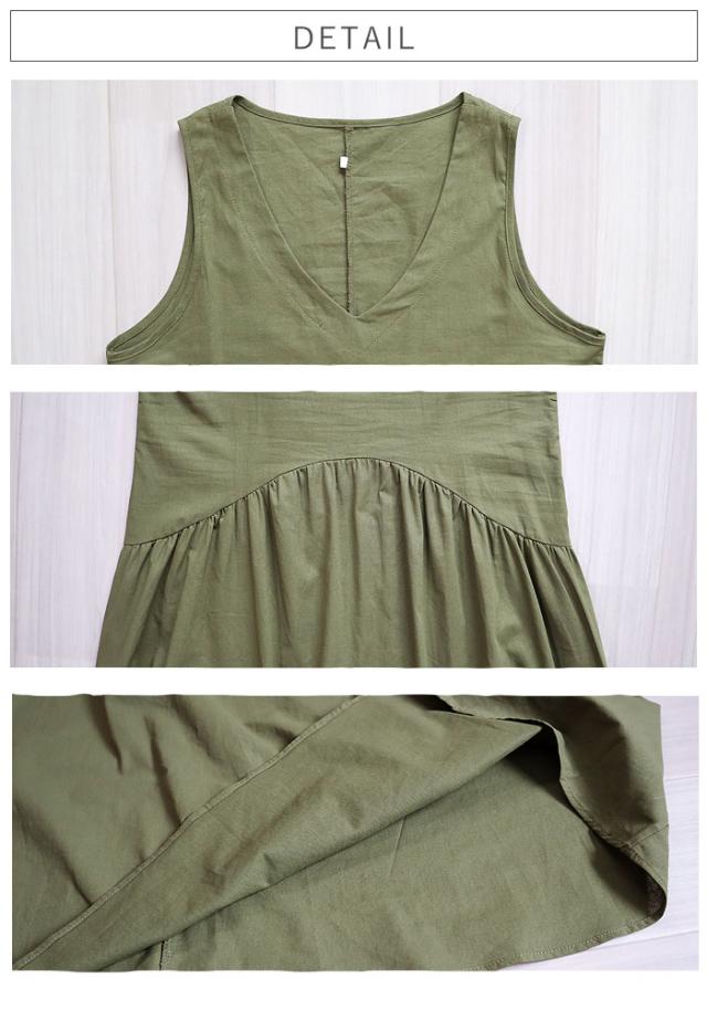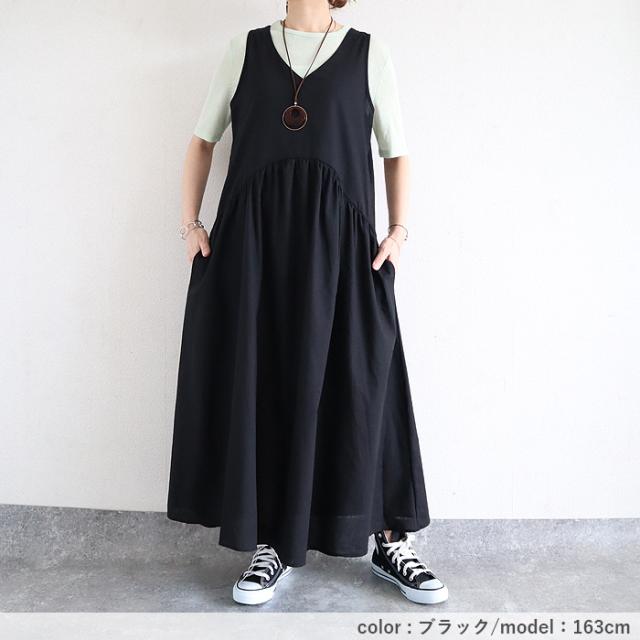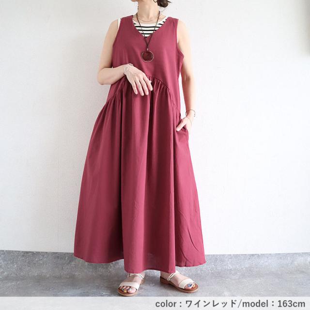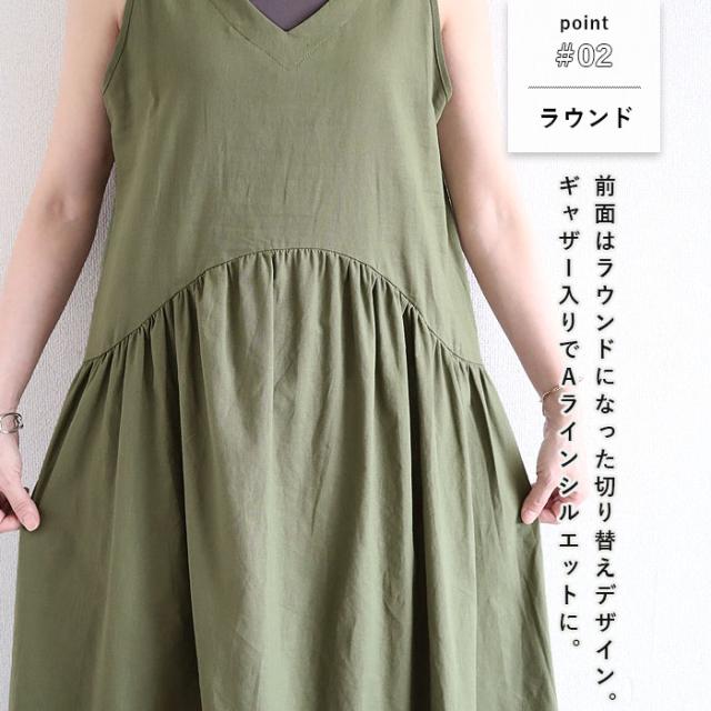 春新作 ワンピース レディース ノースリーブ Vネック フレア ロングワンピ ロング 麻混 リネン混 無地 体型カバー おしゃれ 春 夏 白 黒 [郵3]^w721^ ●