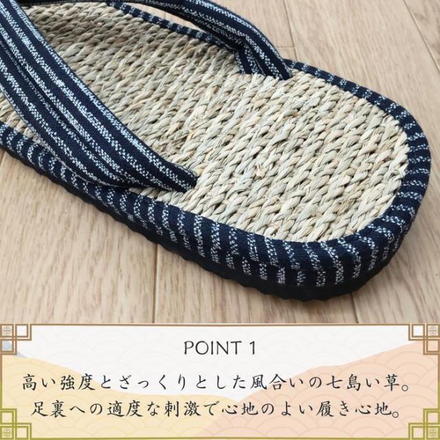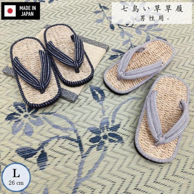 国産七島い草草履 男性用 色柄おまかせ L:約26cm 足つぼ効果 丈夫で蒸れにくい 和柄